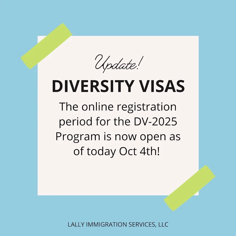 The online registration period for the DV-2025 Program is now open as of today October 4th! concludes on Tuesday, November 7th at 12:00 noon EST.