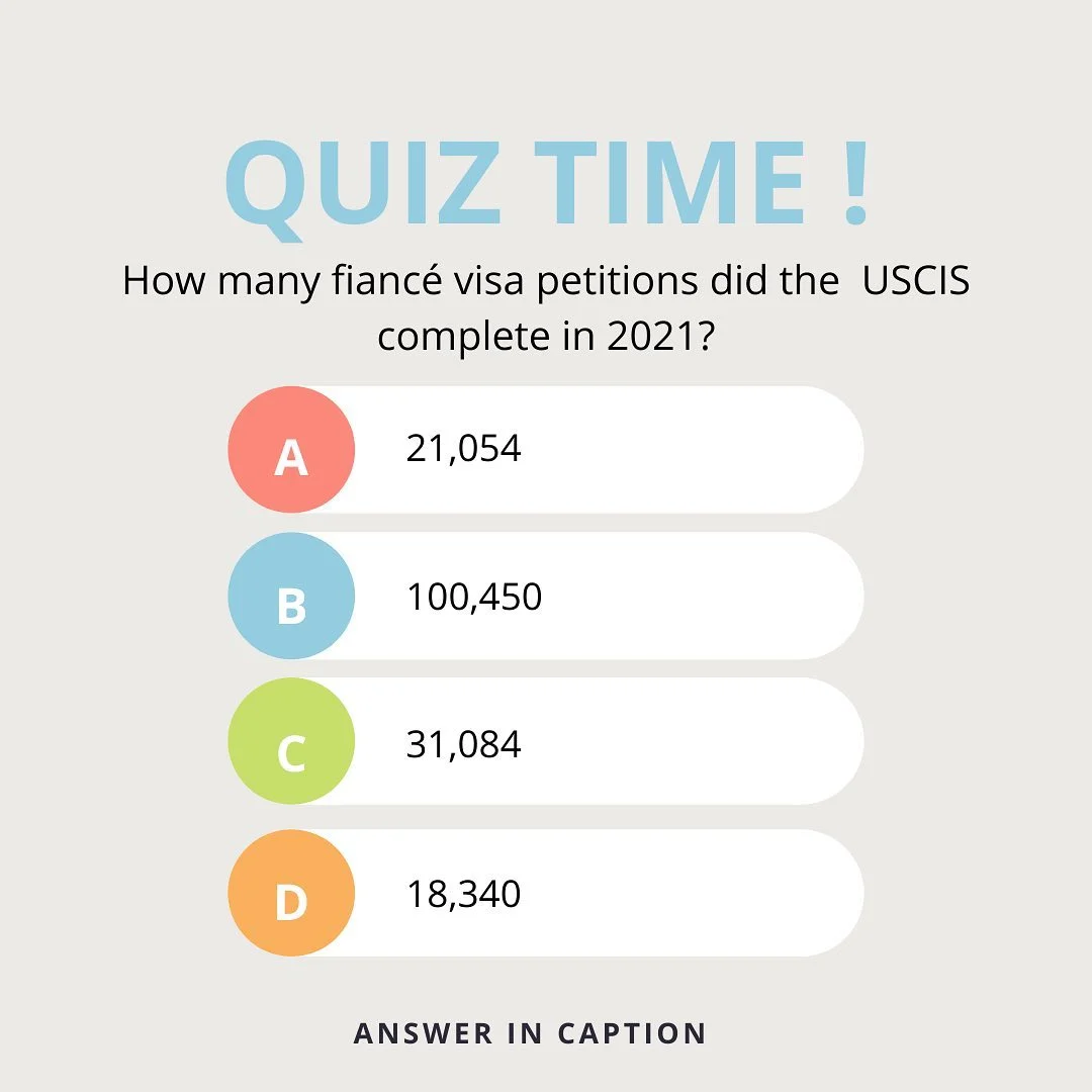 The answer is… C! The USCIS completed 31,084 fiancé visa petitions in 2021.