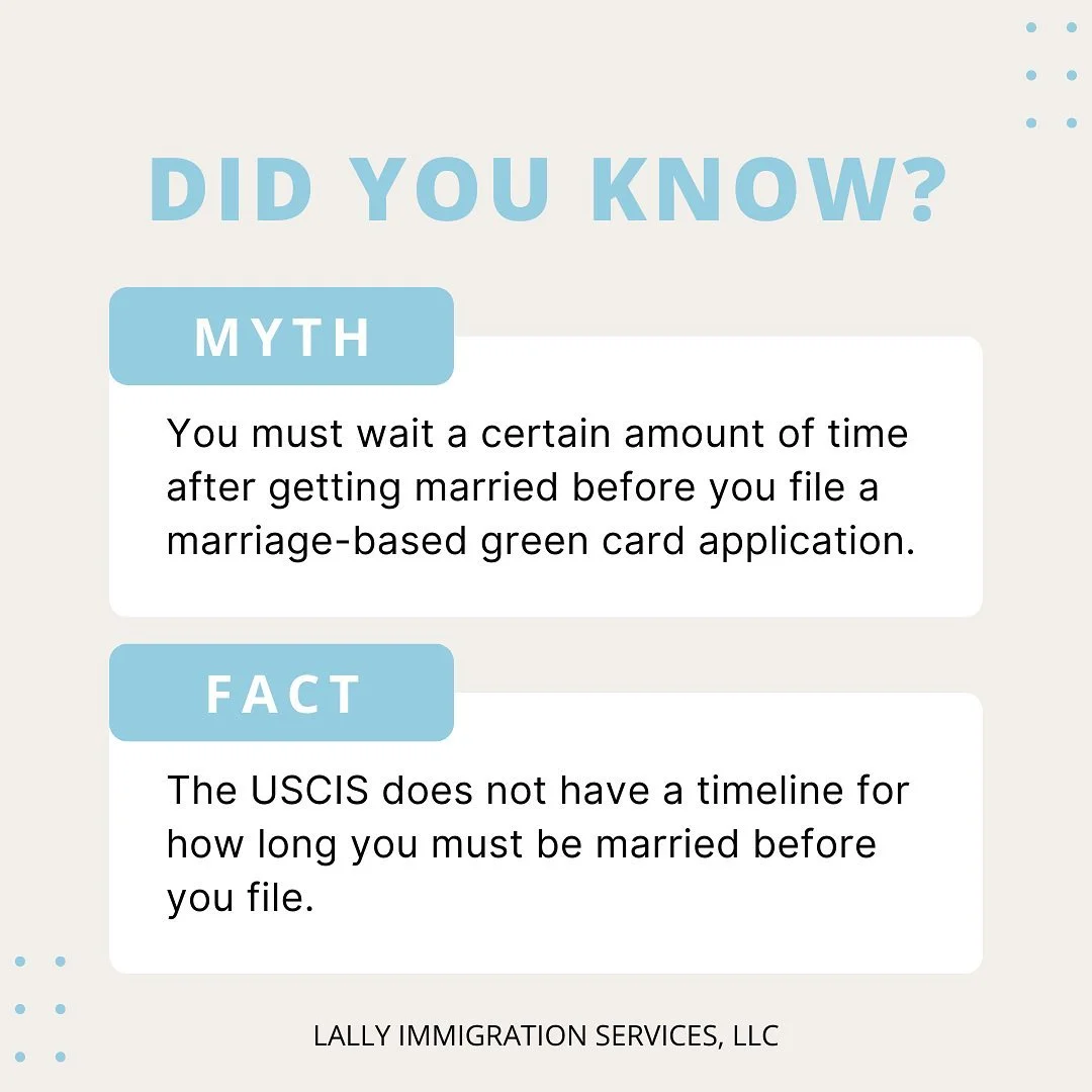 Swipe for the stages of a marriage-based green card application!