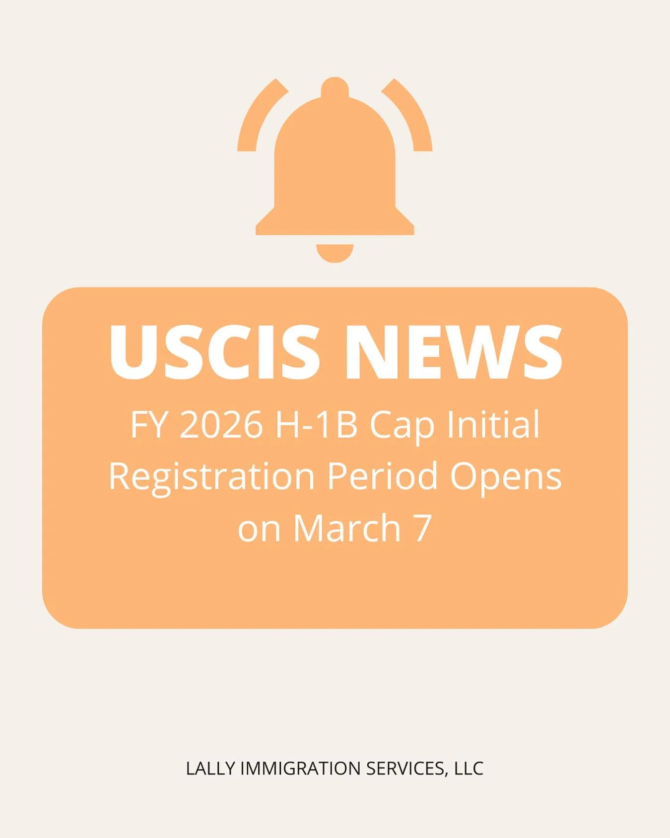 USCIS has announced that the initial registration for the FY 2026 H-1B cap opens at noon ET on March 7 and runs through noon ET on March 24, 2025. During this time, petitioners and representatives must register each beneficiary online and pay the required fee to enter the selection process.