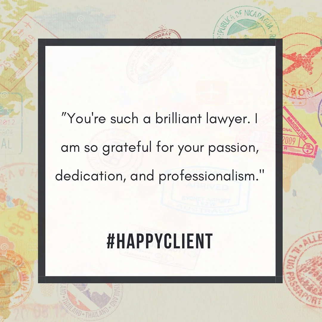 You’re such a brilliant lawyer. I am so grateful for your passion, dedication, and professionalism. Thank you so much! I highly, highly recommend her services.”