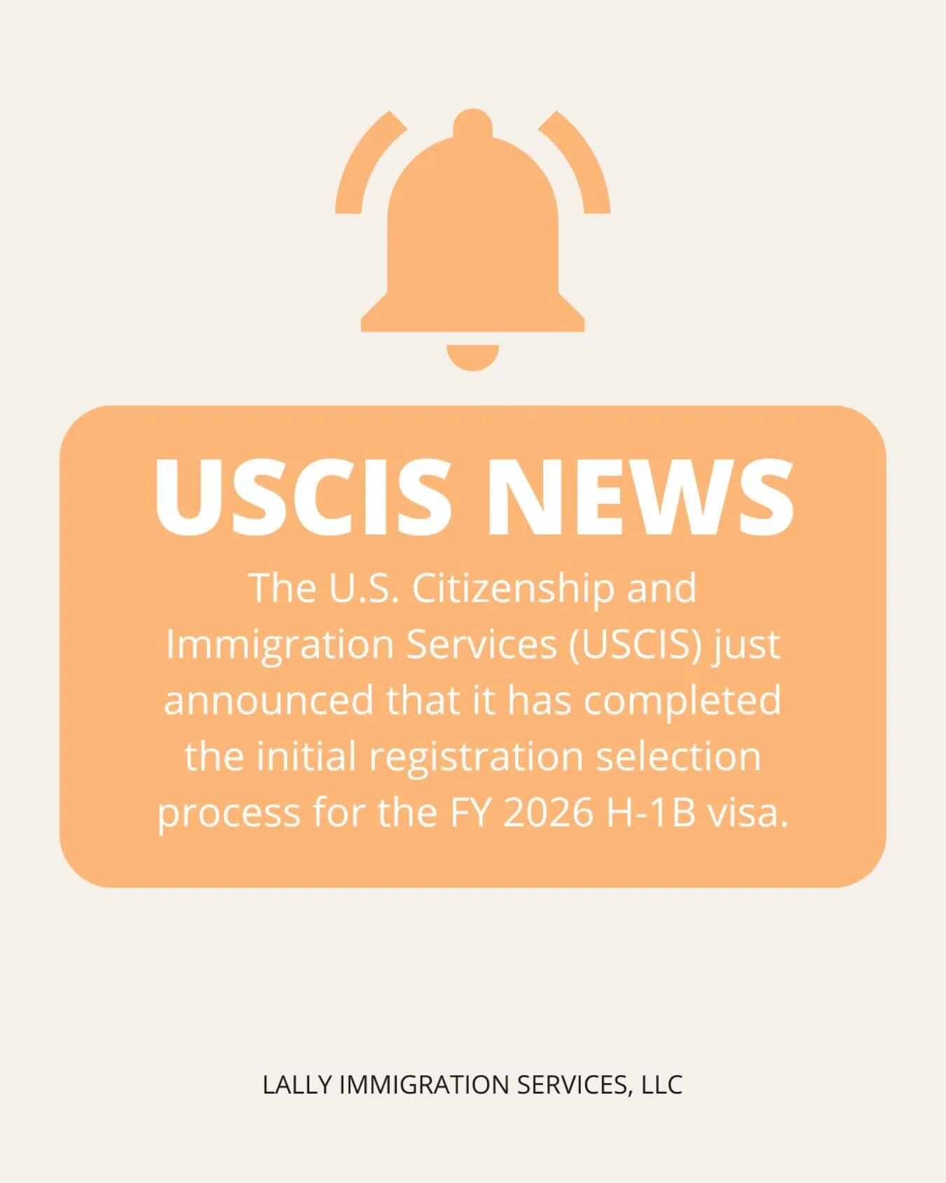 #USCISNews: The U.S. Citizenship and Immigration Services (USCIS) just announced that it has completed the initial registration selection process for the FY 2026 H-1B visa.