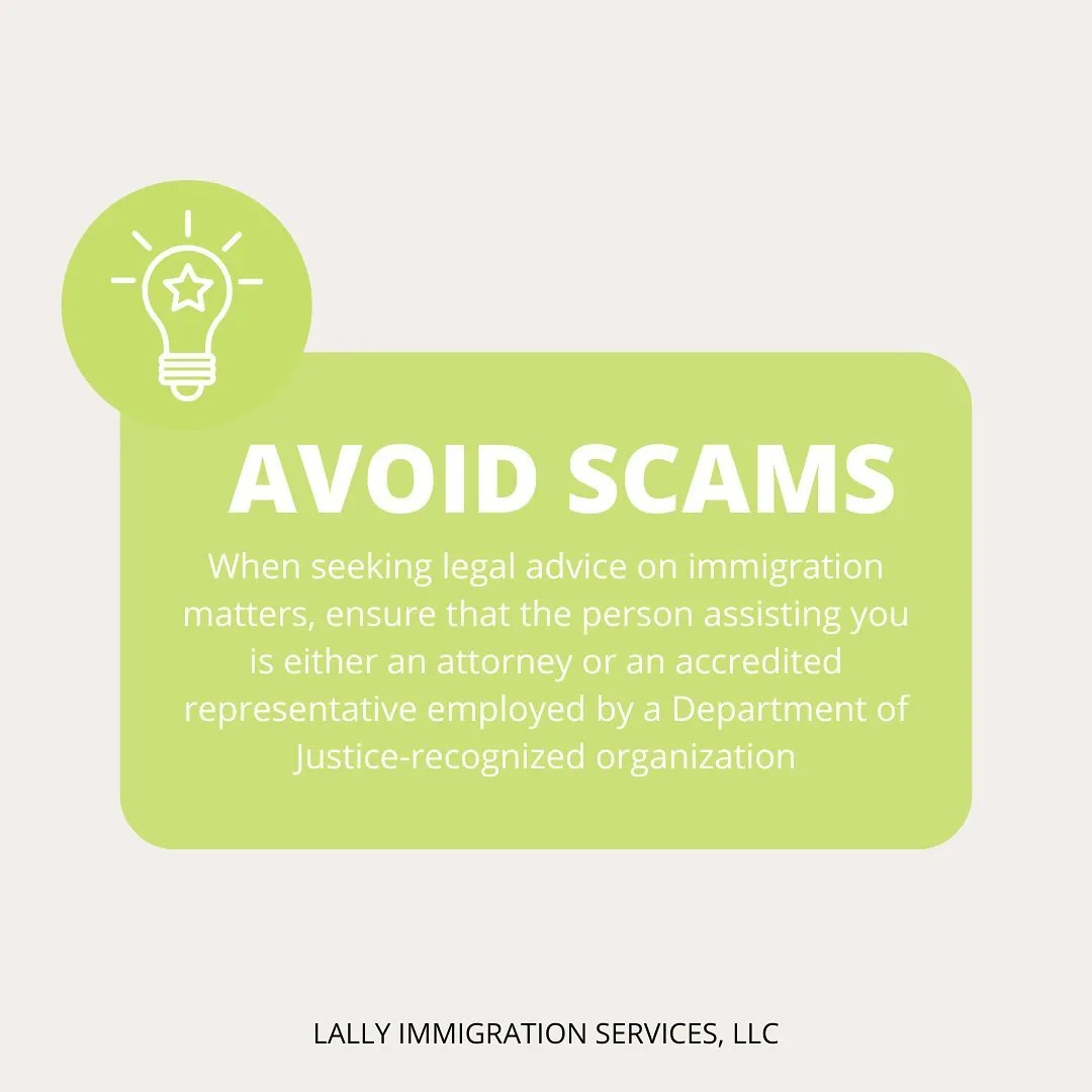 When seeking legal advice on immigration matters, ensure that the person assisting you is either an attorney or an accredited representative employed by a Department of Justice-recognized organization.