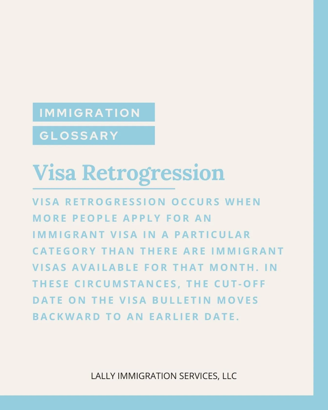 Visa retrogression occurs when more people apply for an immigrant visa in a particular category than there are immigrant visas available for that month. In these circumstances, the cut-off date on the Visa Bulletin moves backward to an earlier date.